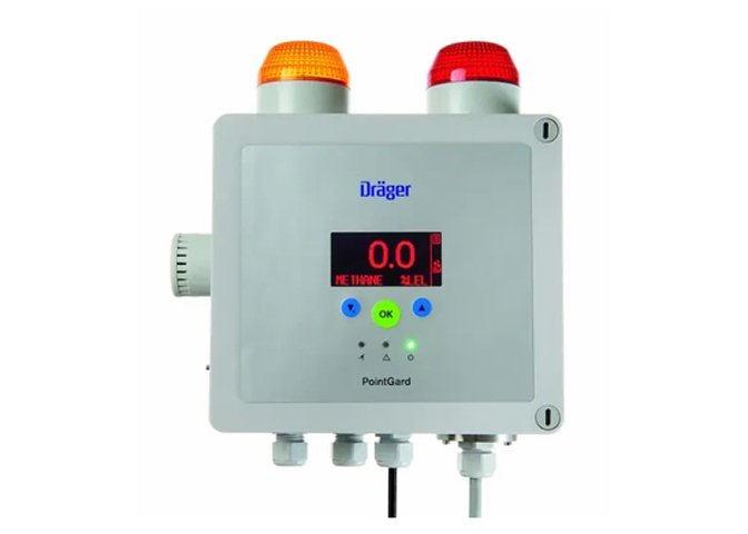 ​              The Dräger PointGard 2700 is a self-contained gas detection system for the continuous area monitoring of flammable hydrocarbon gases and vapors in ambient air. PointGard 2700’s rugged, water-resistant housing comes complete with a horn and strobes, a built-in power supply, and external relays. It is compatible with a remotely mounted Dräger PIR 7000 Type 334 or Type 340 infrared gas sensor.