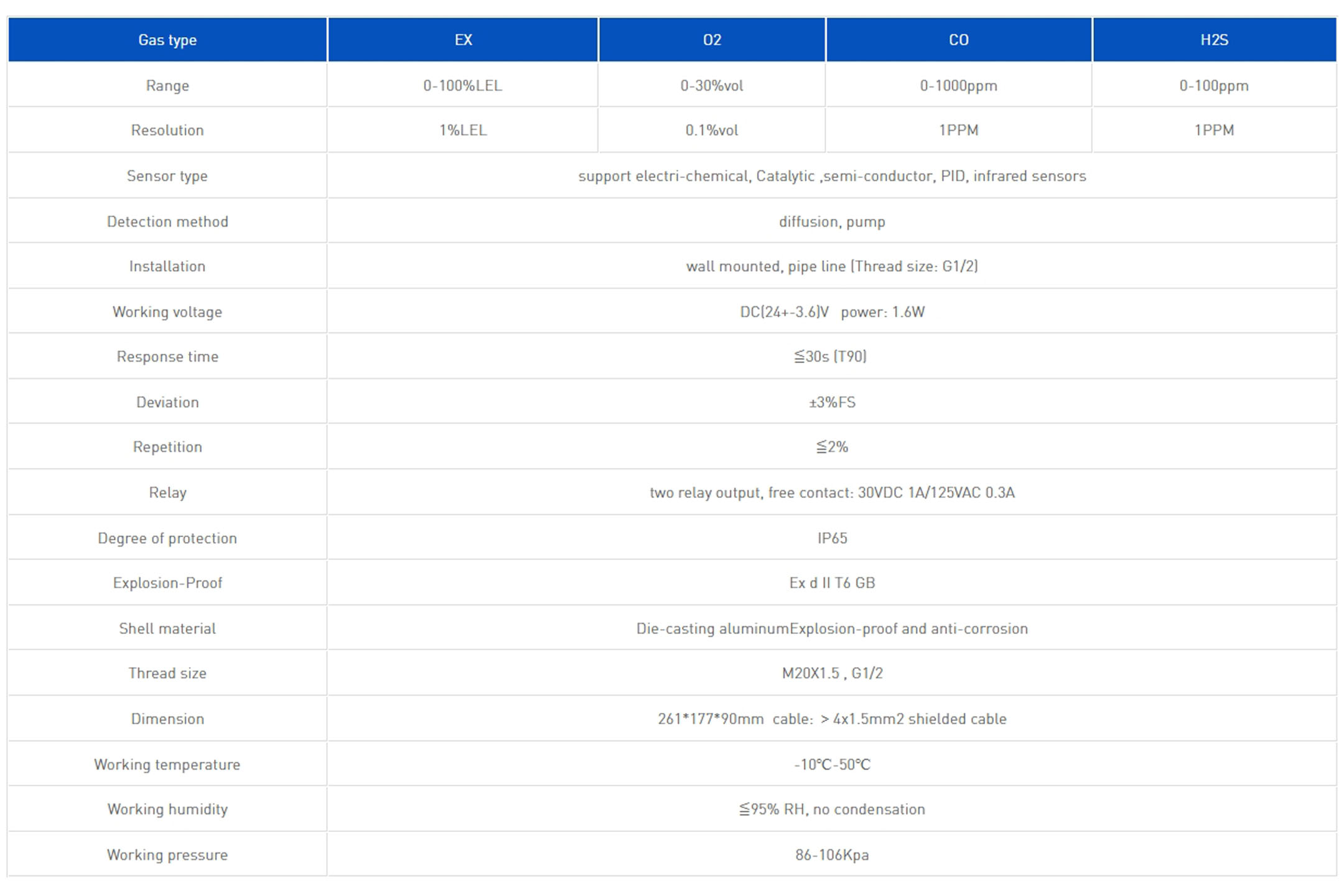 Multi 4in1 fixed gas detector, can detect EX,O2,CO,H2S (support other gas combinations),have ATEX, CE, FCC, ROHS, SIL certification.
