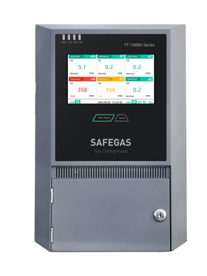 YT-1600H-WH แผงควบคุมก๊าซ YT-1600H-WH สามารถเชื่อมต่อกับเครื่องตรวจจับก๊าซได้สูงสุด 132 เครื่อง ซึ่งสามารถส่งสัญญาณระยะไกลได้ สามารถควบคุมโซลินอยด์วาล์ว, พัดลมดูดอากาศ, มอเตอร์, ปั๊มน้ำ, สัญญาณเสียงและแสง, ระบบสเปรย์, เครื่องจักรและอุปกรณ์ ฯลฯ เพื่อให้ได้งานอัตโนมัติ และสามารถตรวจสอบระยะไกลและการตรวจสอบบนคลาวด์ได้